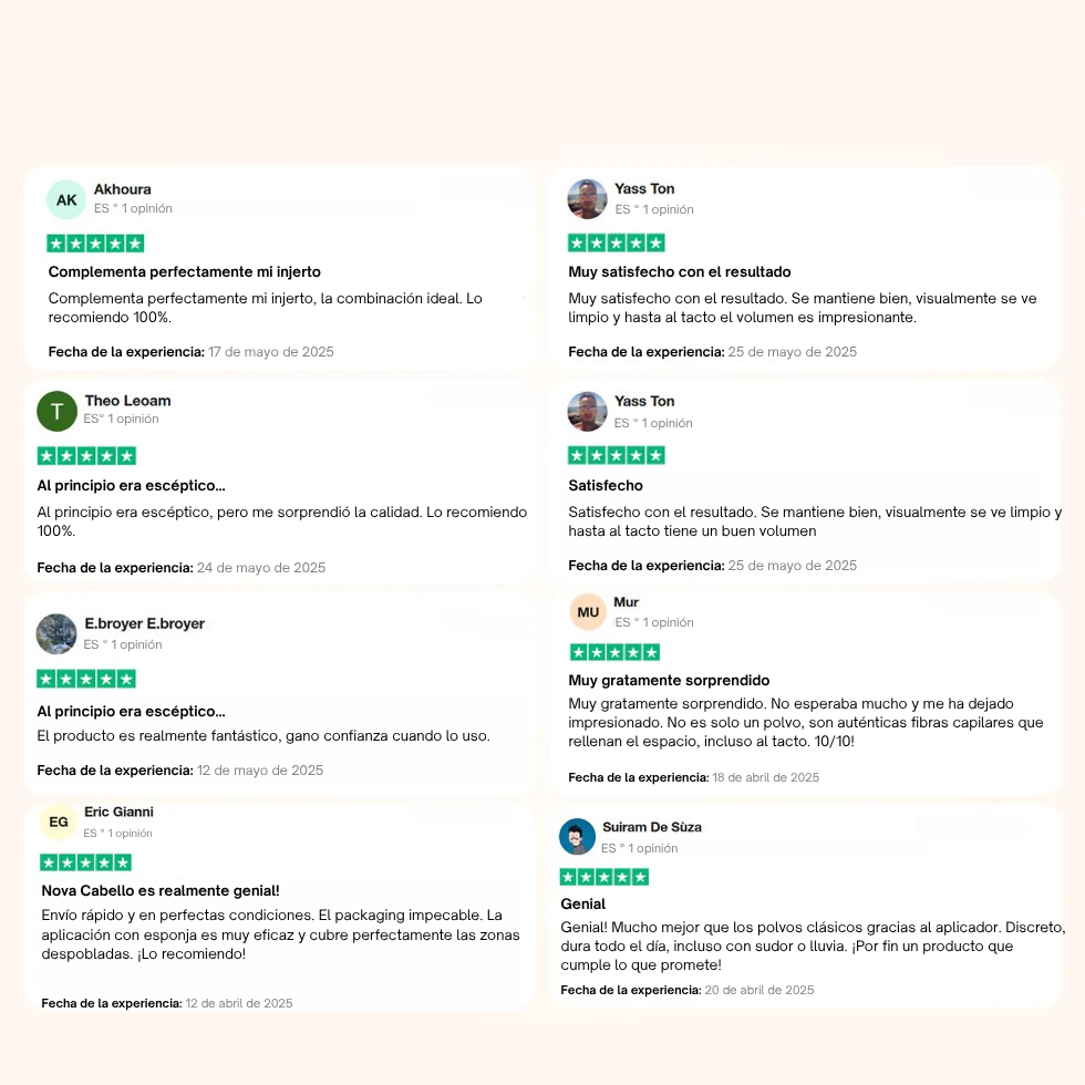 Cuando digo que Nova Cabello™ es el mejor producto que he probado, hablo en serio: aplicación fácil, sin fallos, cabello más denso y natural. Me olvido de las demás soluciones!